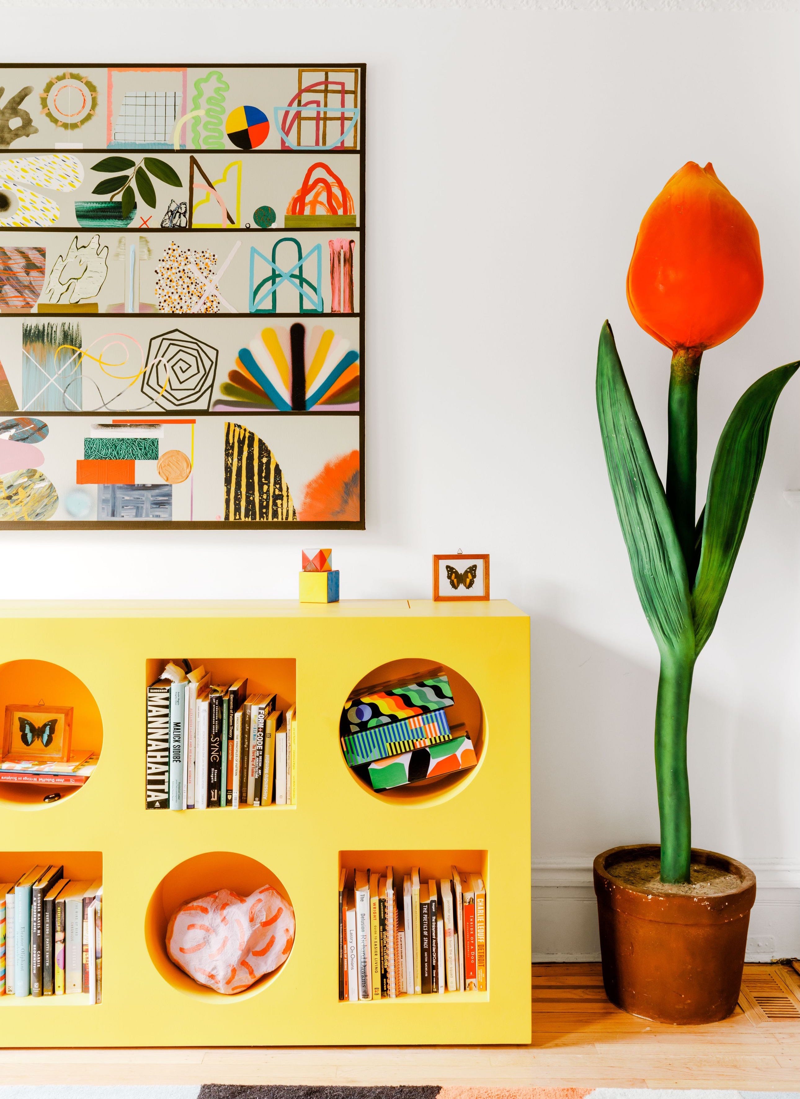 The genius Plano table, designed by Giancarlo Piretti (maker of the very best vintage folding chair) for Anonima Castelli in 1971. A fiberglass top splits into four quadrants, allowing you to make a half moon–shaped breakfast nook, a wedge-shaped corner table, or fold away the whole thing flat for storage. I’m partial to the red if you can find it, but Carefully Picked in Chicago recently had the same table with cool institutional vibes in fiberglass green.