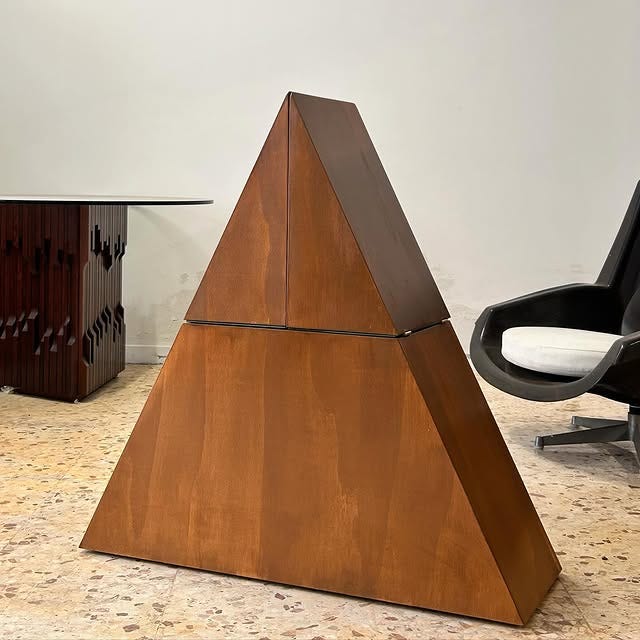 THIS PIECE IS UNBELIEVABLY FUN. I often proselytize about the importance of having statement pieces in your home, but can you imagine what a next-level party trick this would be? This is Mad Men, Tomorrrowland shit. This is the kind of thing everyone should be able to have in their house. West Elm could easily make this. &Tradition could easily make this. And yet, this is the kind of thing that I personally have only seen in the movies; in fact, I’ve read that there’s a bar like this in the James Bond franchise, but I’ve only ever seen one Bond movie and life’s too short to do that kind of recon for this newsletter. But even in the year 2025, I can only imagine this cabinet would immediately transport you to that era, when technology made people feel hopeful rather than frightened of what’s coming.