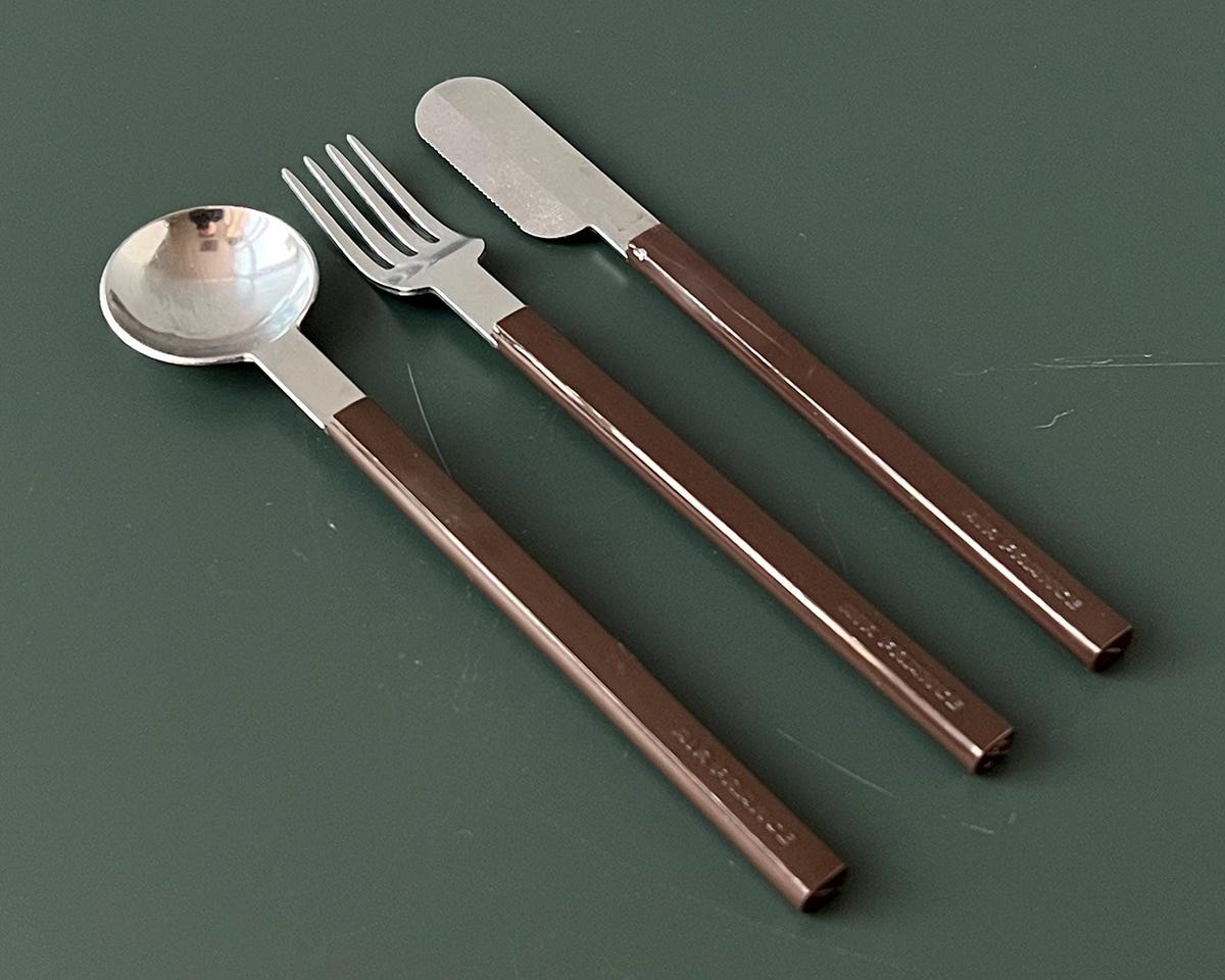 Perhaps the most iconic example of a CLC™ set— and one that splits the difference between utility and decoration — is the trio Raymond Loewy’s office designed for the inaugural Concorde flight in the late 1970s. A chic brown or gray plastic-handled trio embossed with the Air France logo, or a fully stainless steel version — most of which you can still find on the secondary market — Loewy’s flatware was instantly iconic, often squirreled away by sneaky travelers for use upon disembarking. At once highly aspirational and a sign of the times in which we live — just like your favorite cunty little cutlery set.