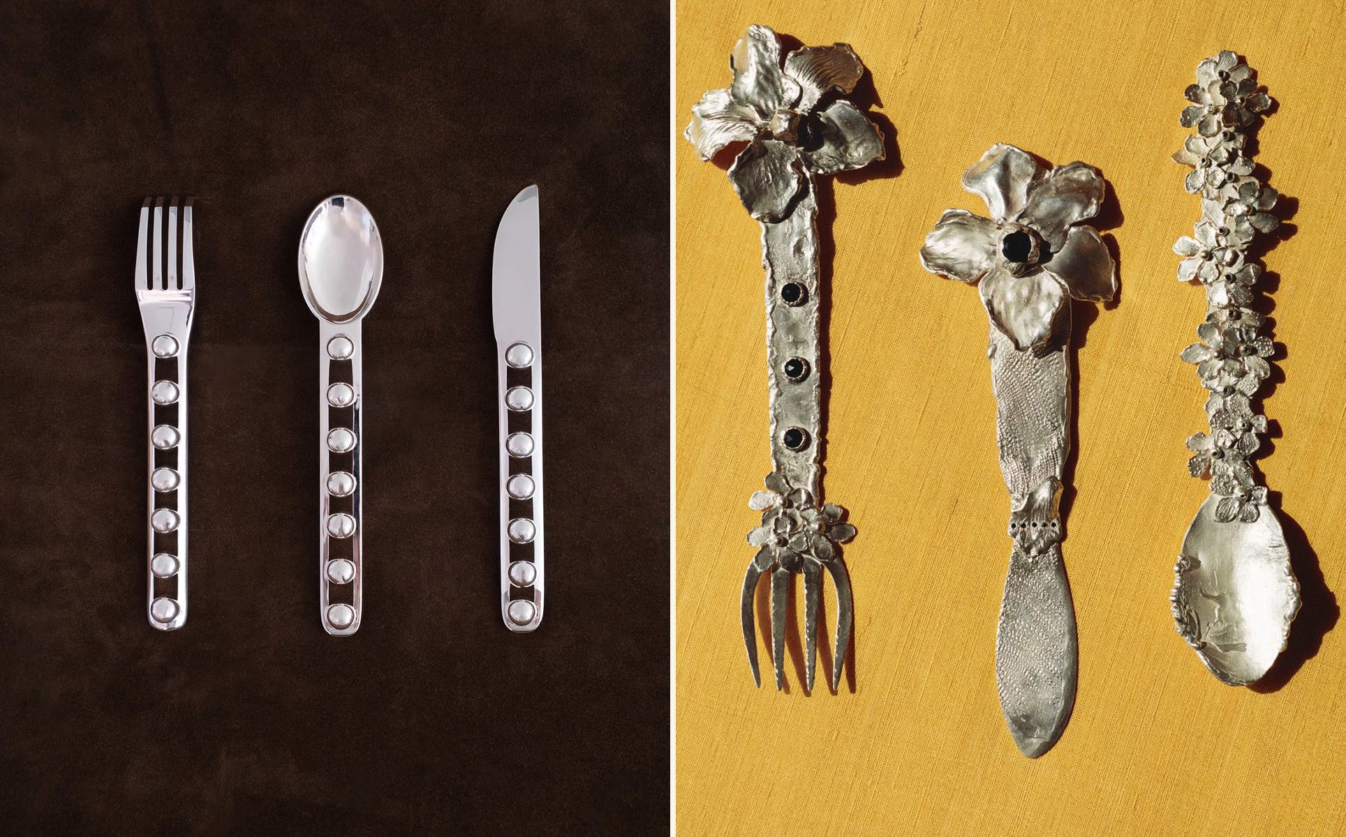 “I think there’s a confluence here of a couple of trends, but the one that’s most interesting to me is that many of these sets are by jewelry designers. I kind of hate when people say flatware is the jewelry of the table. You can go out without earrings, but try eating without a fork. But there’s something to it. There’s a certain scale here that is more diminutive, and there’s something to the fact that it is often women who are designing these pieces. I’ve been doing research for my book and it’s shocking how few women designers did flatware and cutlery. It was not until the ‘60s that you had women designing cutlery.”