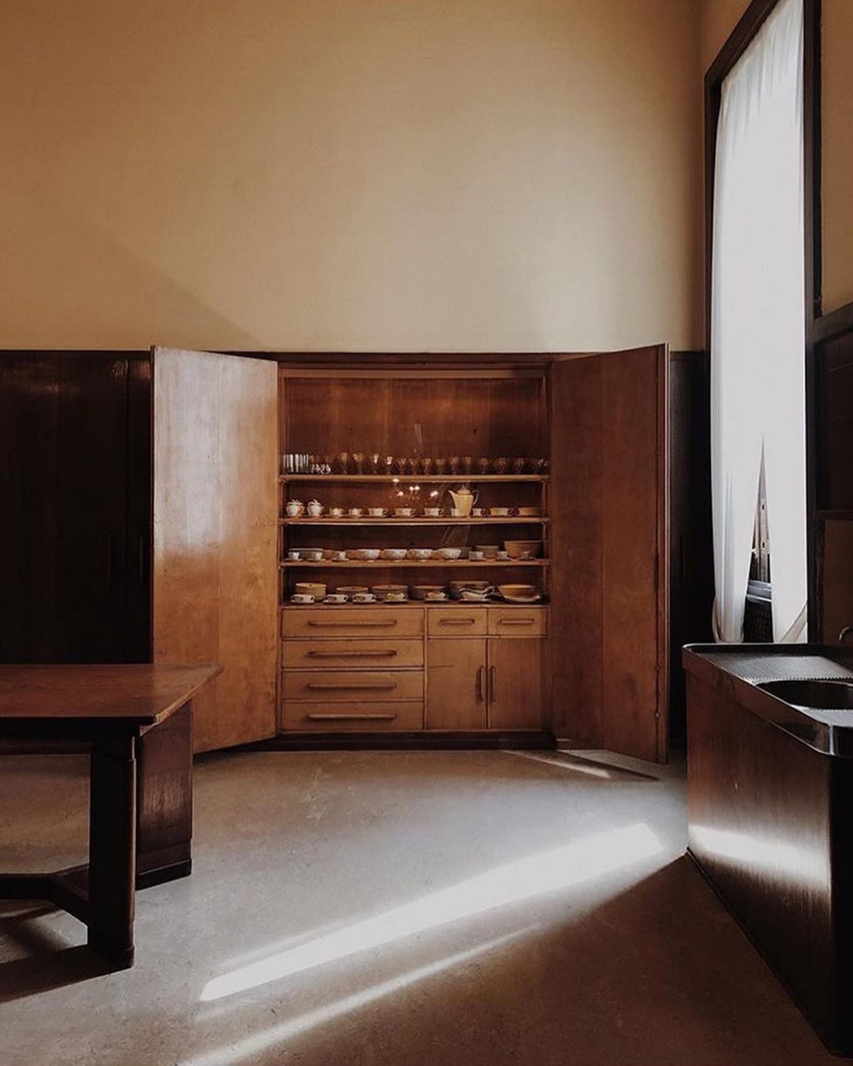 I’m tickled by this 1930s sycamore drinks cabinet at European auction next week. In some ways, it’s no different from a credenza with open shelving on either side but something about the placement of the doors is very but why?? Like a little safe in the middle of your cabinet.